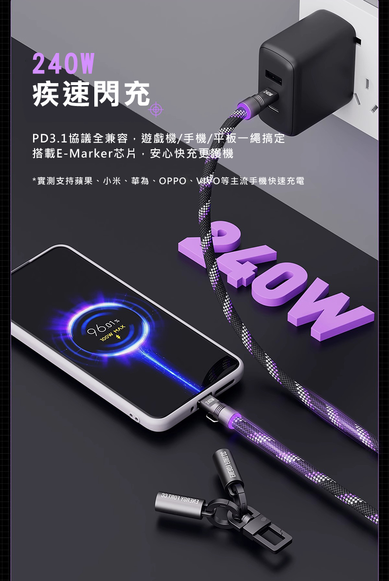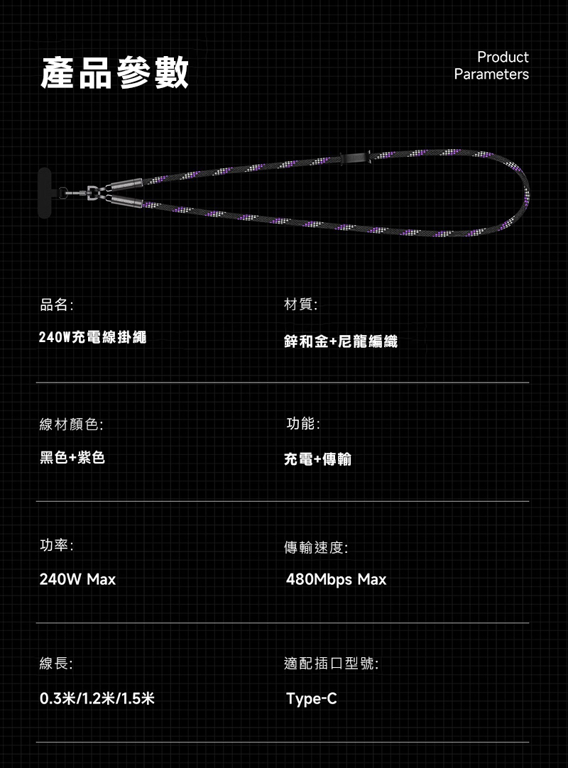 ENERGY FORT Type-C to C 極速編織充電線掛繩(240W)(1.5M)