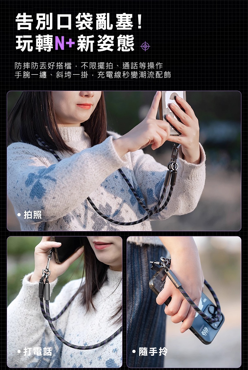 .既是掛繩,也是傳輸線,可少帶一條線出門