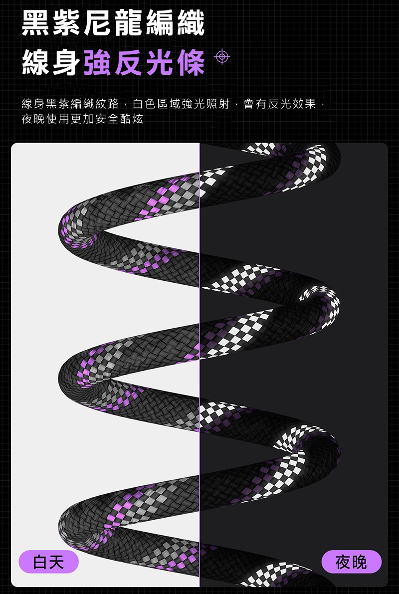 .線身白色區塊強光照射後,會有反光效果,夜間使用更加安全