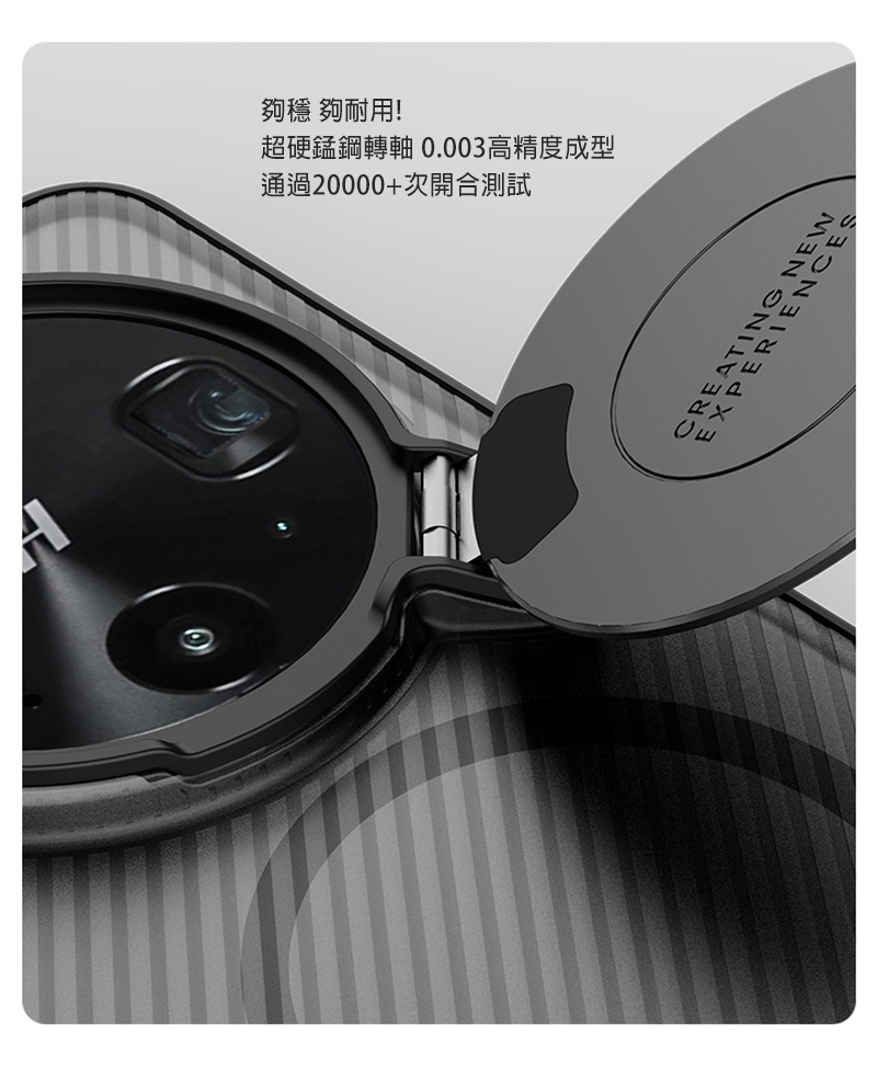 .翻蓋式炫光CD紋鏡蓋,精緻耀目,可提供支架功能