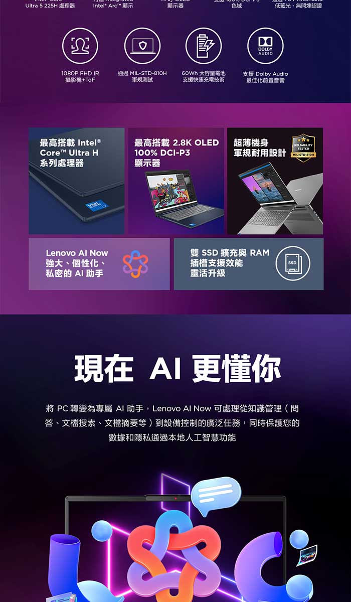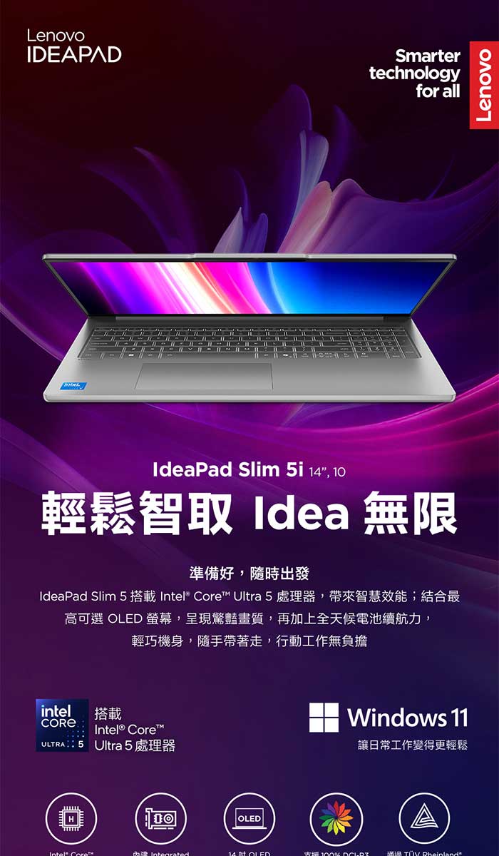 《Lenovo 聯想》IdeaPad Slim 5 83NC000STW(14吋WUXGA/U5 225H/16G+16G/512G SSD/特仕版)