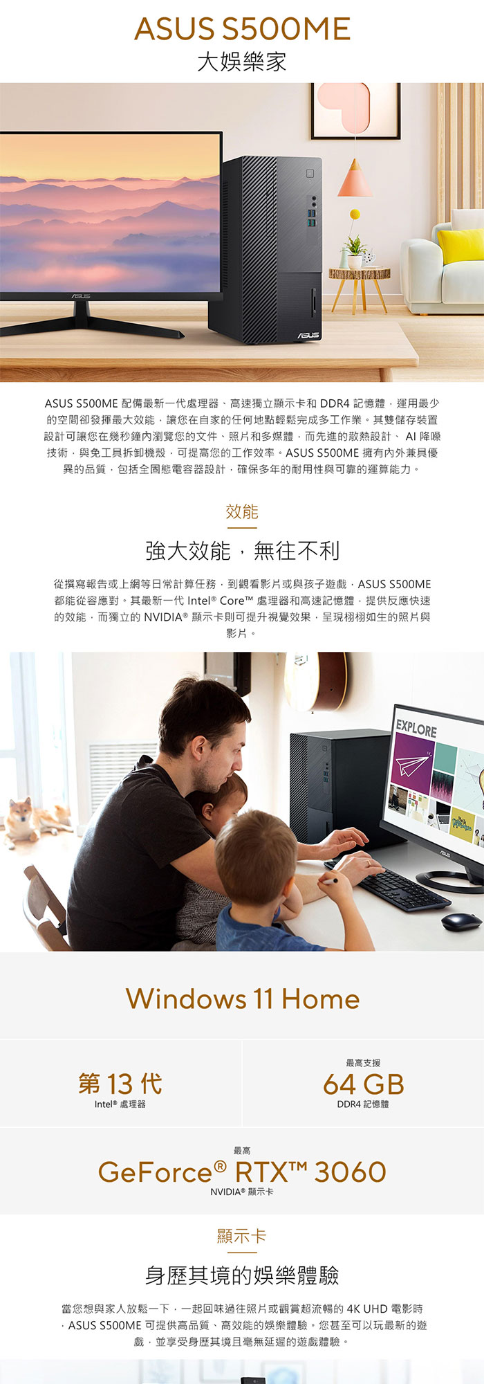 《ASUS 華碩》 H-S500ME-513400026W i5-13400/8G+8G/1TB 桌上電腦/特仕版