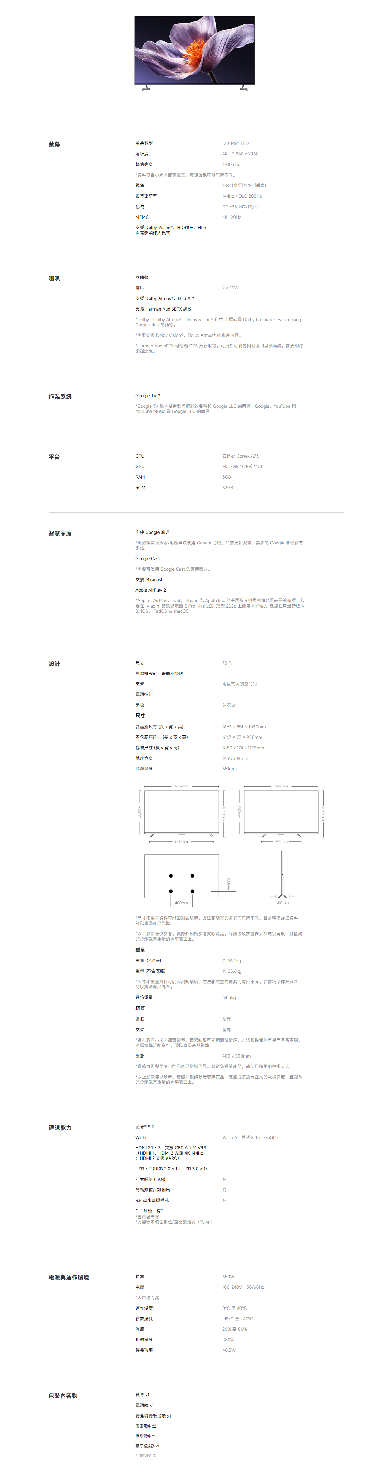 【新品上市】小米 Xiaomi S Pro Mini LED 2026 75型 智慧顯示器