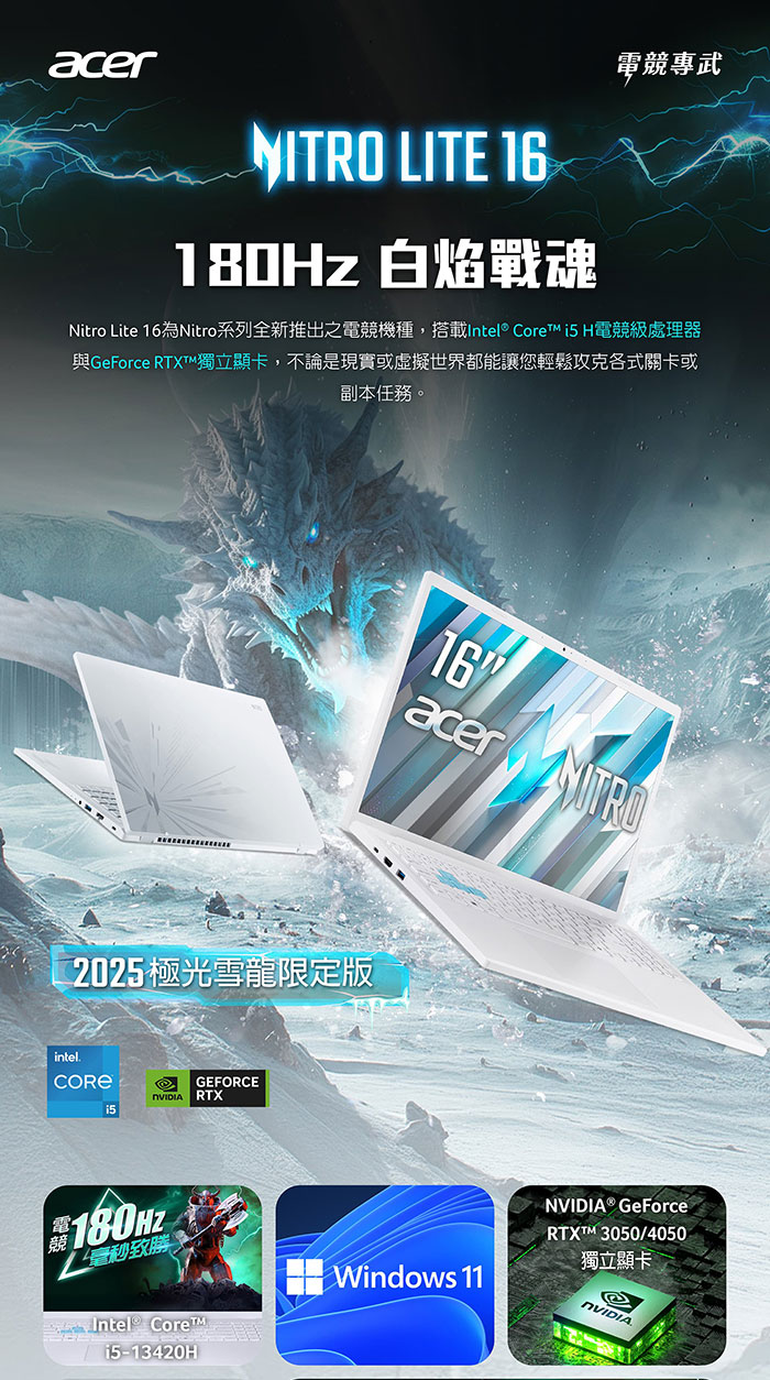 《Acer 宏碁》 NL16-71G-55LH (16吋WUXGA/i5-13420H/8G+16G/512G SSD/RTX3050/Win11/特仕版)