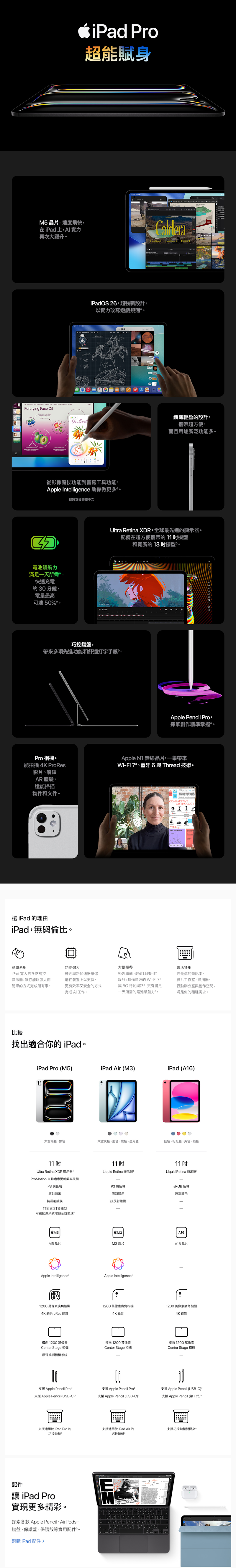 ★支援 Apple Pencil Pro與 iPad Pro (M5)巧控鍵盤