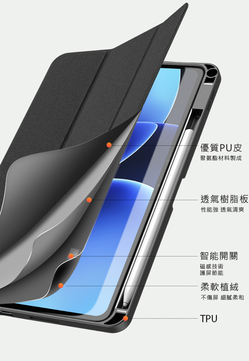 DUX DUCIS Xiaomi 小米 Pad 7 / Pad 7 Pro / Pad 8 / Pad 8 Pro DOMO 筆槽防摔皮套(黑色)
