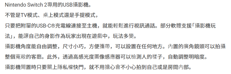 Nintendo Switch 2 專用攝影機