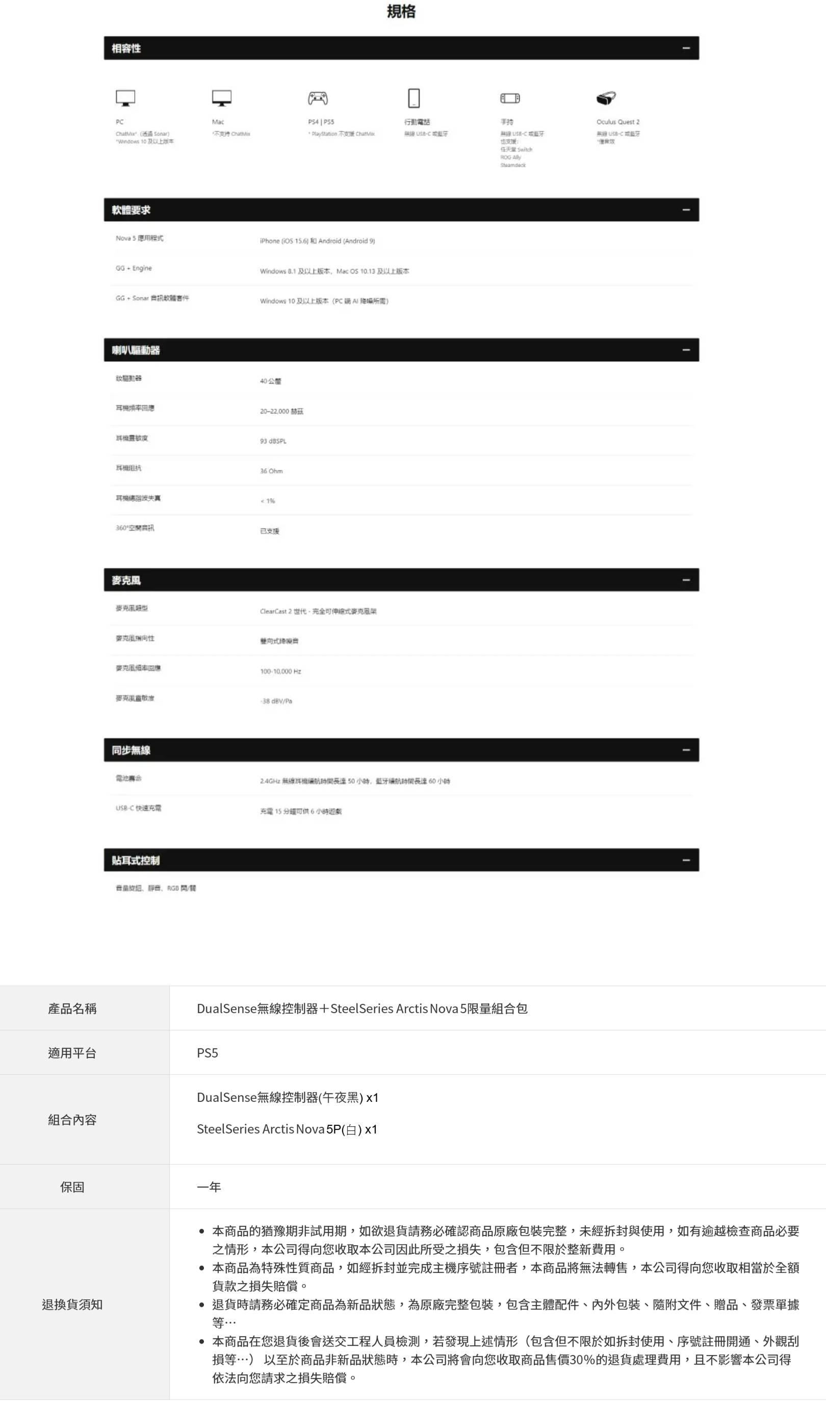 PS5 DualSense無線控制器+SteelSeries Arctis Nova 5限量組合包