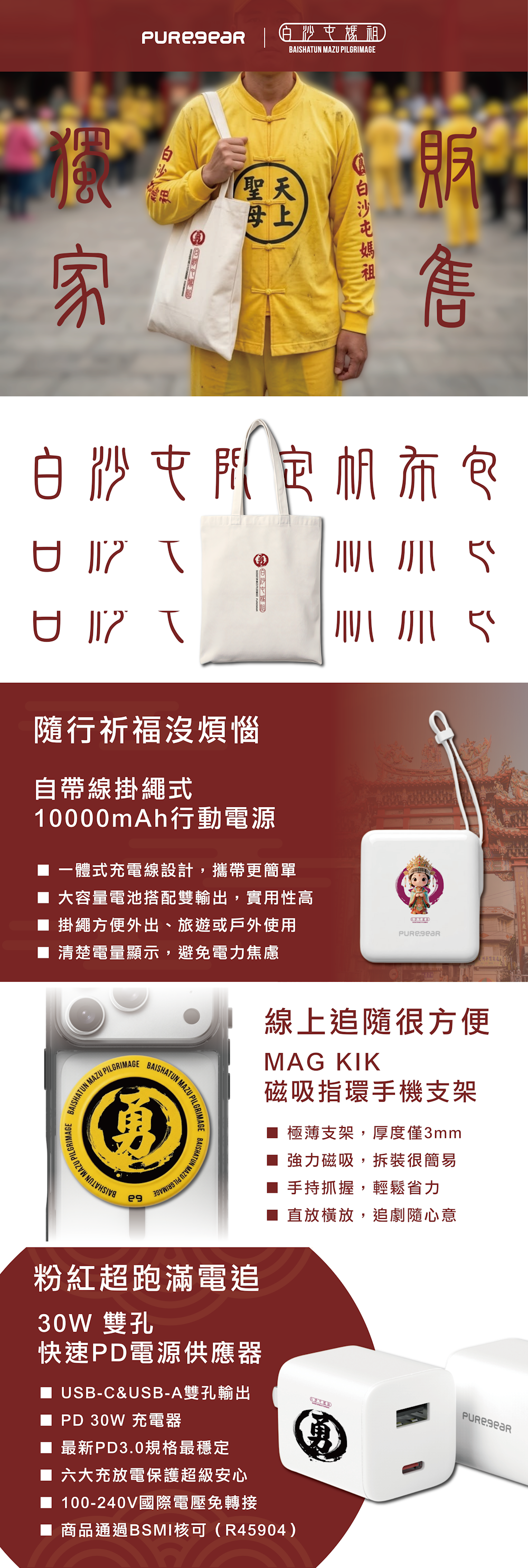 普格爾白沙屯媽祖滿電行走包(電源+支架+購物袋)+MK充電組
